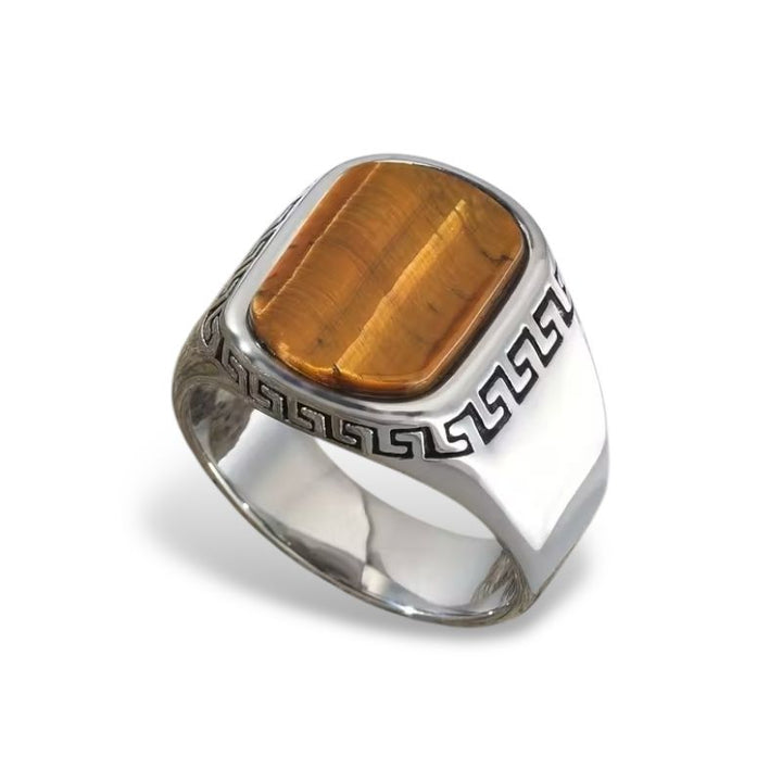 Este anillo tipo sello con piedra y detalles griegos no es solo una joya: es una declaración. Representa poder, misterio y estilo sin esfuerzo. Ideal para quienes prefieren lo clásico con un toque oscuro y callejero.
