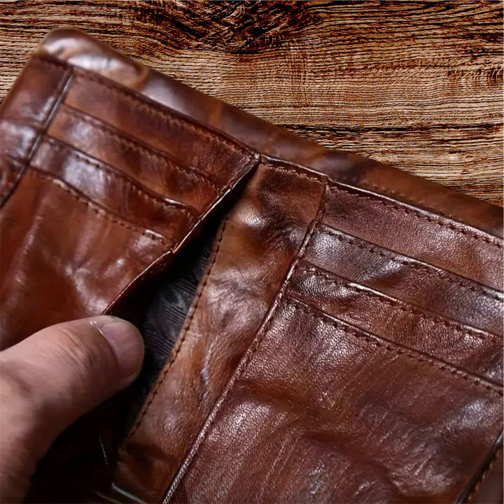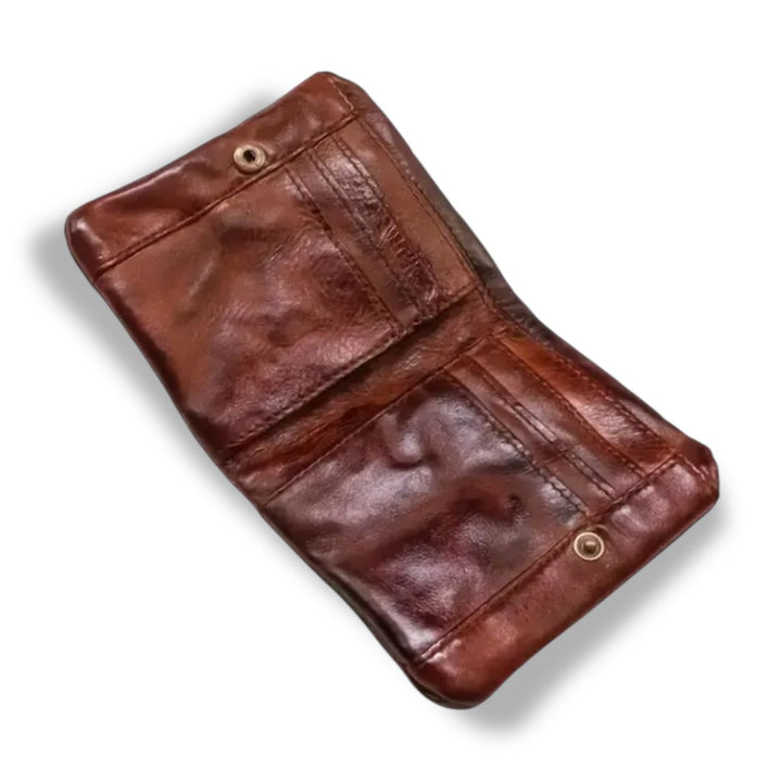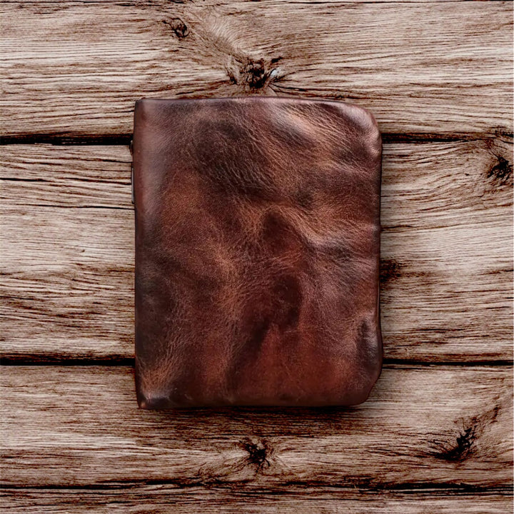 Cartera estilo vintage, casual, con gran capacidad y múltiples ranuras. Cierre para monedas en parte trasera. Bloqueo de RFID.